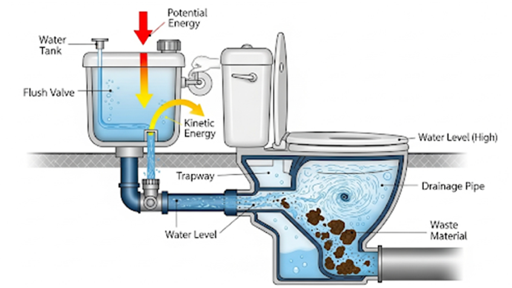 사이펀 효과란, 액체가 중력의 힘을 받아 더 높은 곳에서 낮은 곳으로 계속해서 흐르는 현상을 말합니다. 변기 물이 배수관을 가득 채우면, 그 무게와 압력으로 인해 변기 내부의 오물이 순식간에 하수관으로 빨려 내려가게 됩니다. 마치 진공청소기처럼 모든 것을 빨아들이는 원리라고 생각하시면 쉽습니다.